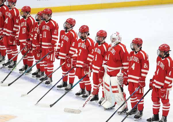 said Head Coach Michael Mead. “It was a good run. ... Just an unlucky bounce.” Nearly every minute of the playoff run was a battle for the Pioneers — but in each moment of peril, Saint John’s deftly handled the situation. In the Round of 32, Nico Santella’s doubleovertime goal sent the Pioneers past Acton-Boxborough. In the next round, another Santella snipe beat BC High with 42.2 seconds left.