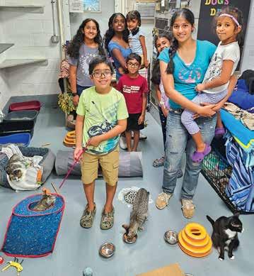 Children from Juniper Trail play with cats at Baypath Humane Society after making a donation to the shelter on Legacy Farms Road North.