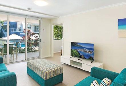 Many of the spacious and modern apartments overlook the courtyard, giving you a perfect view of the activity below and even the lift up to the rooms has tropical decor. You very much feel on holiday once you step on the grounds.
