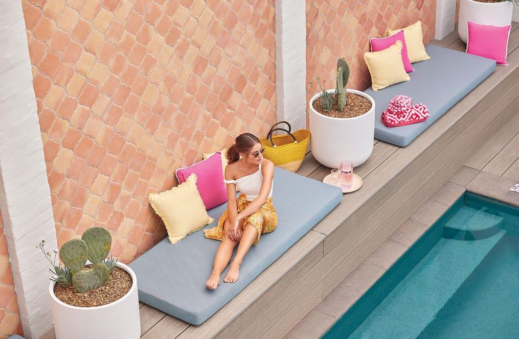 Despite being in the heart of Sydney’s bustling dense inner-city suburbs, the Adina Chippendale property has a wonderful relaxed holiday vibe, with a white painted exterior with apricot tiled hued aspects, decorative cactus themed areas and a spacious tropical courtyard.
