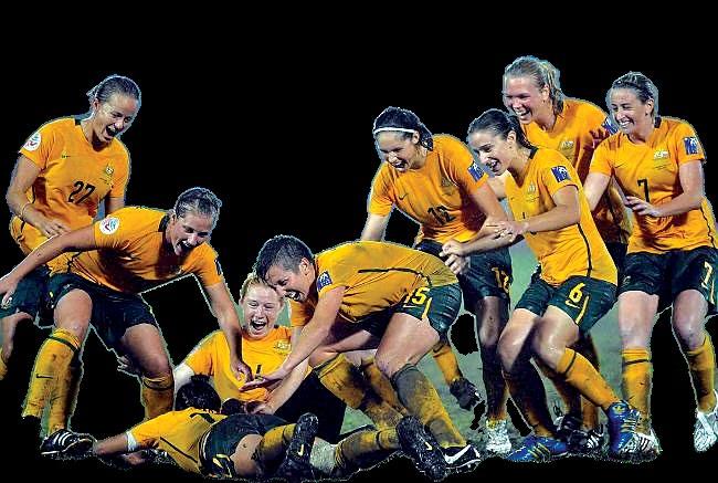 Western Sydney girl and former Wander Woman Kyah Simon is mobbed after scoring the winning penalty in the 2010 Women’s Asian Cup Final.