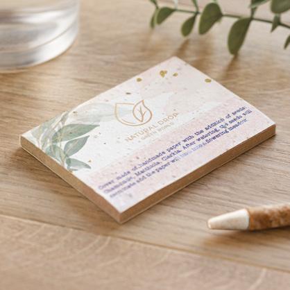 Your logo design printed on the cover and on each sheet? Our wide range of sticky notes, Combos and Notebooks are available in standard- and recycled paper; and also in Seeds and Coffee paper. Delivery time from 3 weeks.