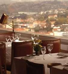 Com uma vista panorâmica sobre o Porto, este bar e restaurante ostenta uma decoração requintada, com tapeçarias de Guilherme Camarinha nas paredes, mobiliário da década de 1960, teto em madeira exótica, e janelas rasgadas, deixando entrar a luz de toda uma cidade. With a panoramic view over Porto, this bar and restaurant boasts a refined decor, with tapestries by Guilherme Camarinha on its walls, with furniture from the 1960s, an exotic wood ceilings and panoramic windows, allowing in the light of an entire city.