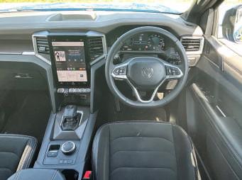 The dashboard and steering wheel controls, left for cruise control, right for infotainment, are easy to use with separate metallic-ringed climate dials sitting underneath the touchscreen.