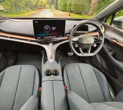 consisting of a 12.3” cluster and 12.3” central touch screen that stretches across the dashboard top. There’s no gear lever; instead, you’re presented with a right side steering wheel stalk with a simple Reverse, Neutral, Park or Drive option. The steering wheel also features switches for cruise control on the left and on the right those to utilise the infotainment, hands-free phone, voice control and heated steering wheel.