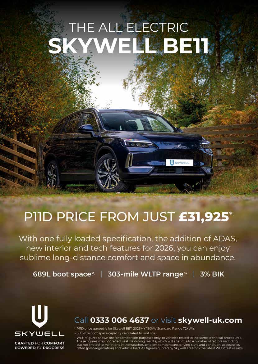 We first drove the Skywell BE11 in late 2024 and came away disappointed. Distributed by Innovation Automotive they’ve listened to criticism and have tweaked and improved it, as we found out. Read our thoughts on Page 4. Chery launched the Omoda and Jaecoo brands in 2024, and the Chery brand followed in 2025. We stepped out in the Chery Tiggo 7, a plug-in SUV, last month and discovered that it offers a lot to company car drivers at a budget price.