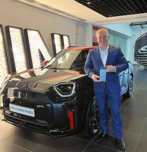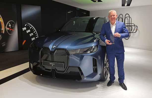 Andrew Jago, General Manager, Corporate Sales BMW Group UK, with the award for the BMW iX (right), and below, with our award for Fleet Manufacturer of the Year for BMW and MINI