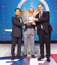 Double top: Main photograph shows Seb Brechon, Head of LCV and Brand Performance at Renault, with Rebecca Hester, Product Manager PRO+ Commercial Vehicles and the Master’s Van of the Year award