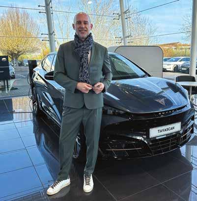 Marcus Gossen, Director of CUPRA UK with the CC&V Manufacturer of the Year trophy, with one of its fleet-friendly models, the Tavascan