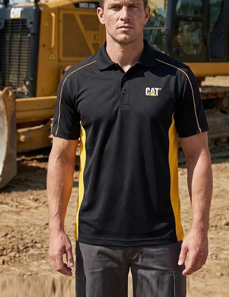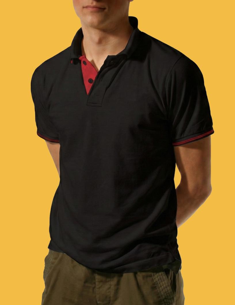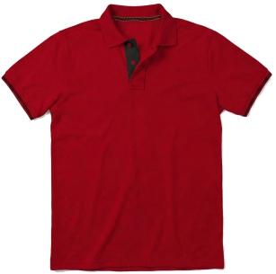 Compacted Pre-shrunk, Double needle stitch on the shoulder, sleeves and boom hem 3 Buon placket with dyed to match buons and boom Soft flow dyed Colour fastness Guaranteed. Red / Black