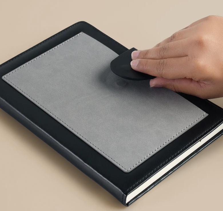 Soft Ribbed Leatherette. Featuring a ribbed leatherette cover with a soft-touch finish, the Infinote notebook combines style with durability, giving it a sophisticated, premium look. This A5-sized notebook is easy to carry, making it perfect for meetings, travel, or daily use.