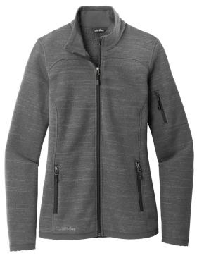 8.1-ounce 100% polyester sweater fleece with 86/14 polyester/ spandex woven trim. Smooth-faced and brushed-back for warmth these anti-pill styles also have stretch for easy movement. Woven fabric details add sophistication. Cadet collar coil zippers open cuffs and open hem. Zippered chest pocket front zippered pockets