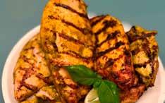 Let the chicken come to room temperature, while you preheat a barbecue to 400 degrees. Reserve marinade. Cook breasts for five minutes, flip and continue cooking until cooked through.