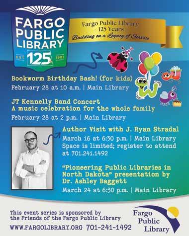 Fargo Public Library events are free and open to the public. A complete schedule of upcoming events is available at all Fargo Public Library locations and on our website at : fargolibrary.org