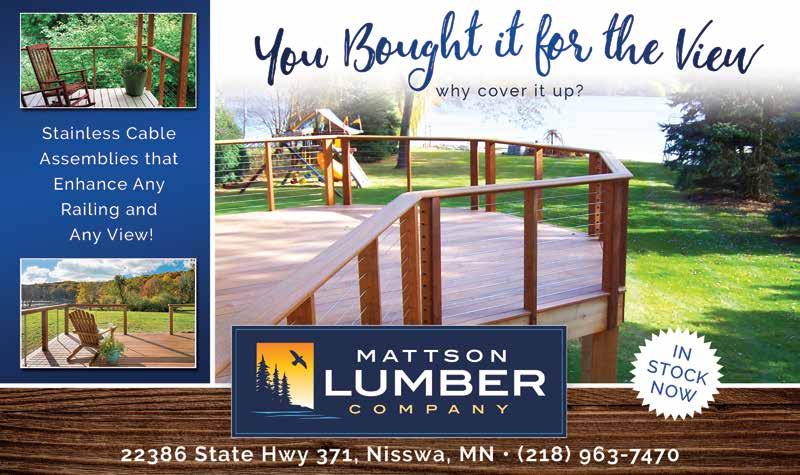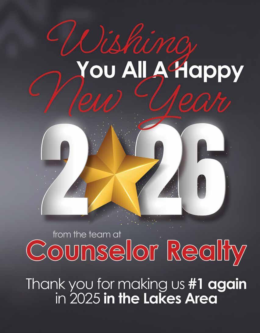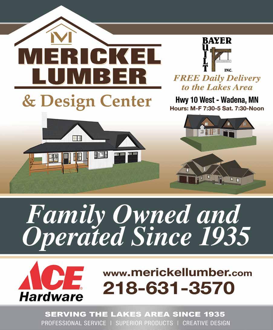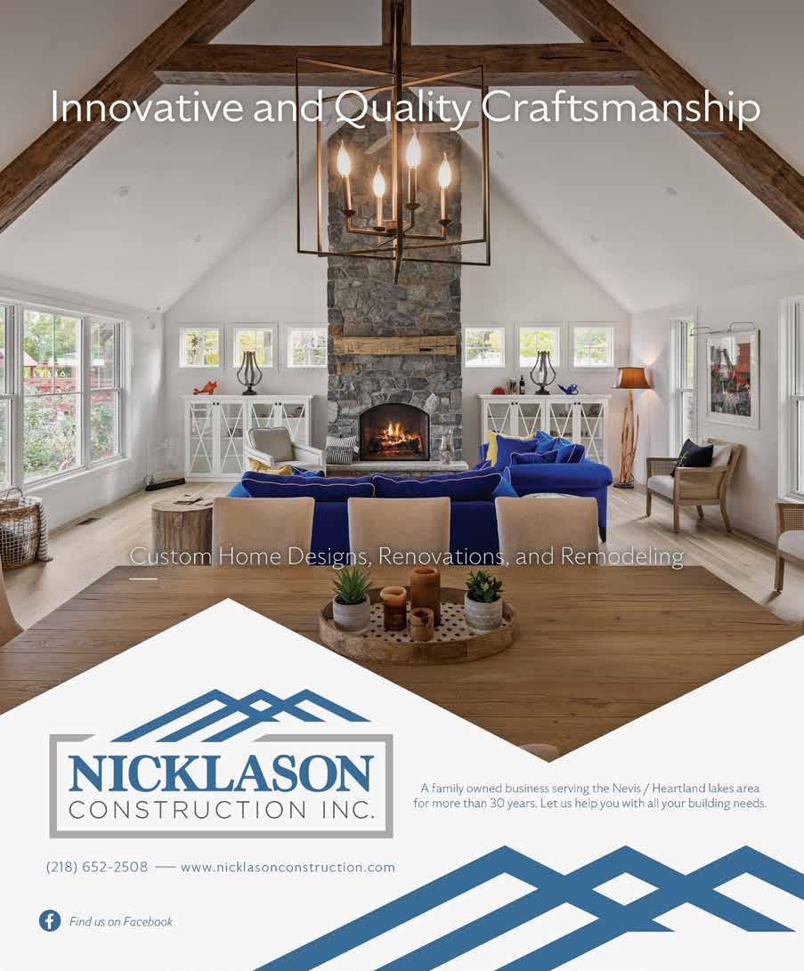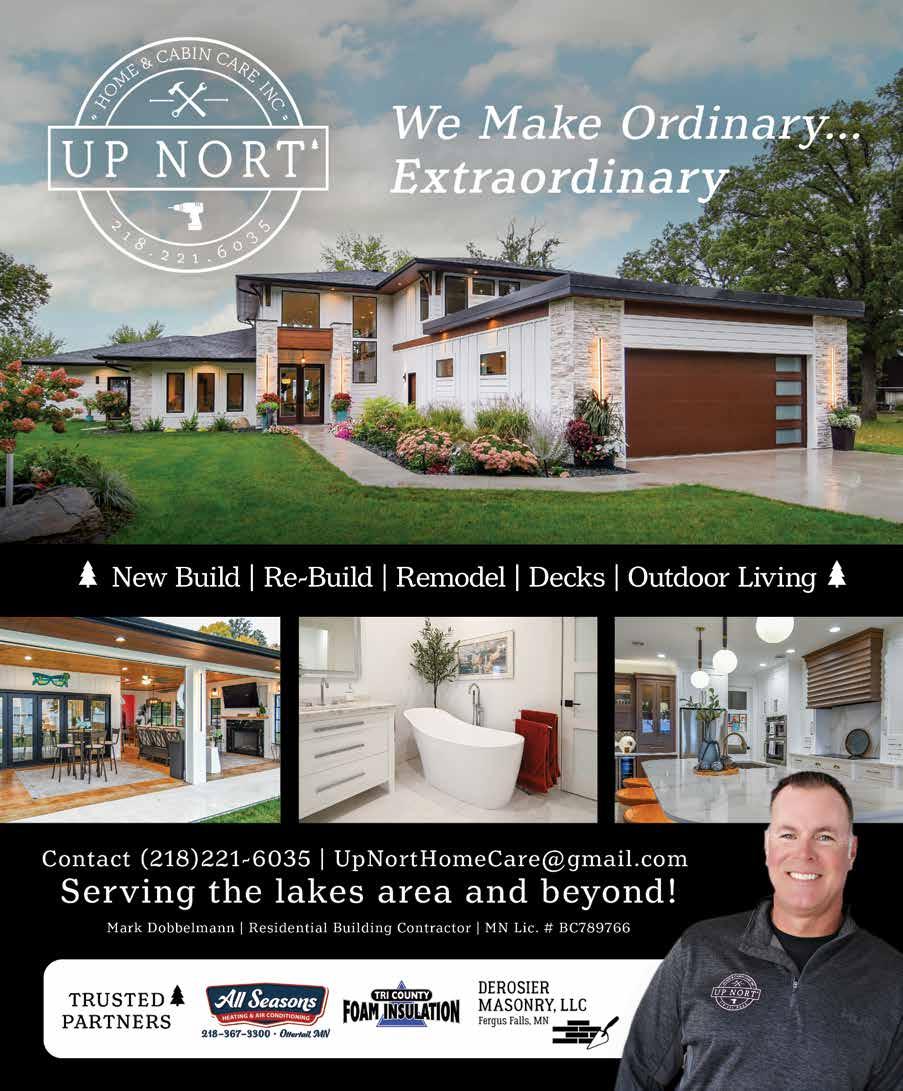 In the U.S., one year $24.95; two years $43.50; three years $55.00. Elsewhere add $5.00 per issue. Back issues are available for $5.00 per issue, plus shipping and handling. Subscriptions can be purchased online at lakeandhomemagazine.com/products LAKE & HOME MAGAZINE Published bimonthly by Compass Media | 126 S Vine St | Fergus Falls, MN 56537 Year 27, Issue 1 • January / February 2026