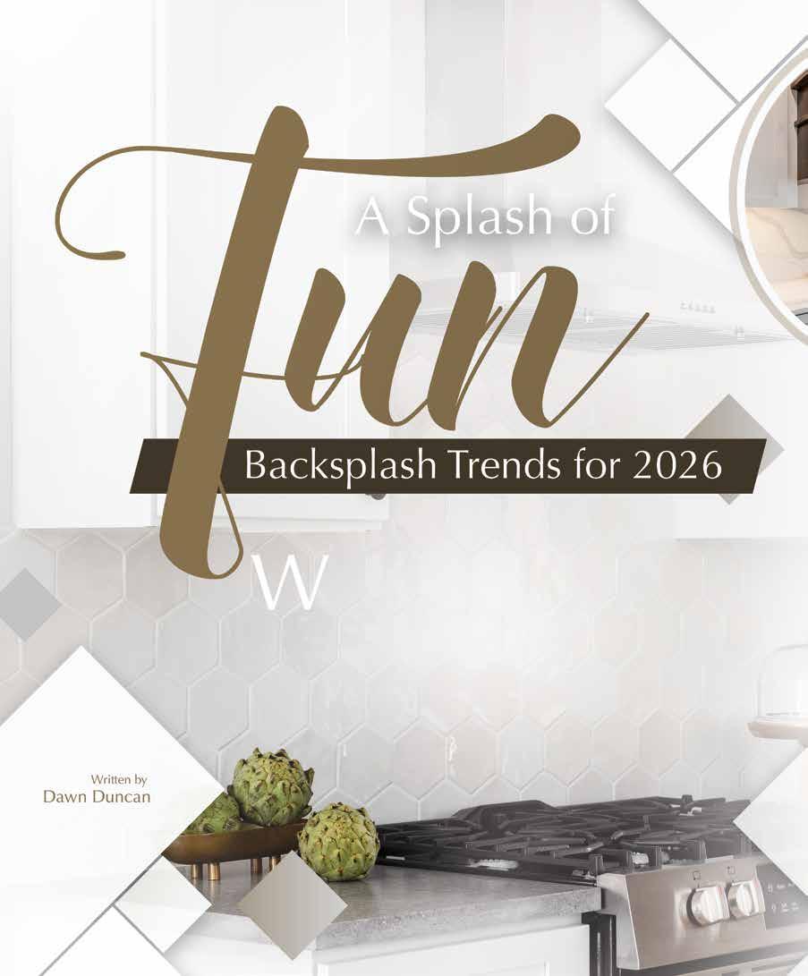 Tips and ideas from seasoned experts help this topic unfold in ways that fuel you with information and inspiration. Additionally, we delve into subjects such as backsplashes and what’s on the New Year horizon in terms of trends, how to make your great room exceptional, on-trend cabinet hardware, options in dining tables and chairs, and pros/ cons of exterior stone.