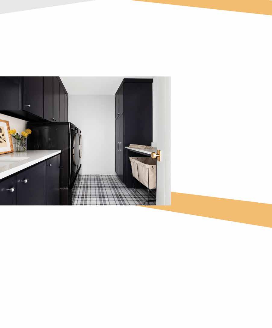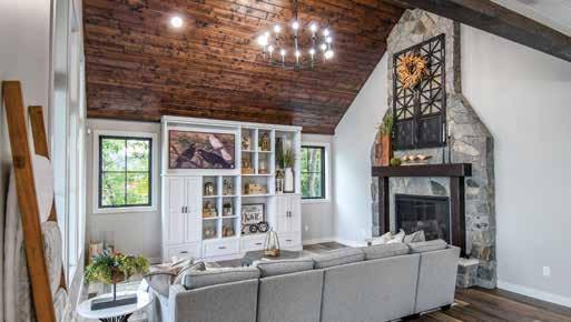 Those dramatic stairs weren’t the only accents the couple wanted for this home. They had a list of features in mind, including an upstairs laundry room for the boys’ rooms, so no one has to lug laundry baskets up and down the stairs. Every bedroom boasts en suite facilities. A game room and a 400-squarefoot screen porch with motorized Phantom Screens are used in every season.