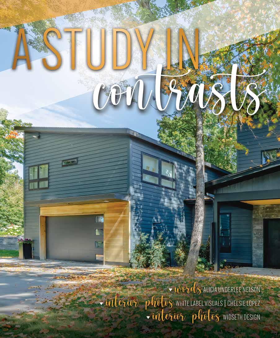 The Licence family home on Little McDonald Lake is a study in contrasts. The architecture is streamlined, but never sterile. The 5,100-square foot space is expansive, but also welcoming and homey, its neutral palette grounded in rich white, black, and charcoal. Accents of color and whimsy pull it together.