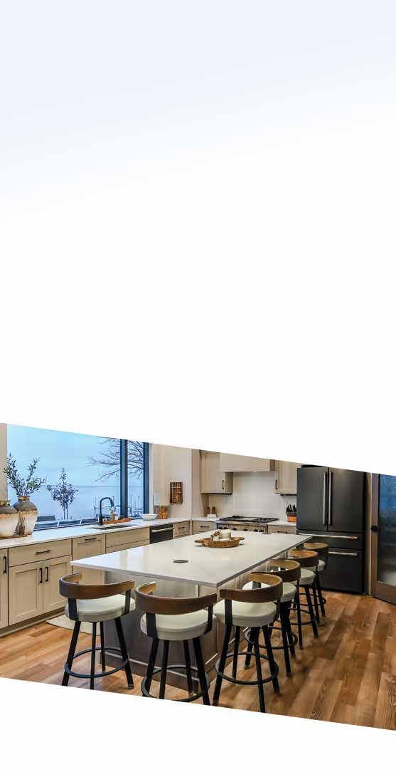 “Historically, everyone always ended up in the kitchen,” said Mark Dobbelmann of Up Nort' Home and Cabin Care in Battle Lake, MN. “Now we’re seeing the kitchen and living space intersect so you can cook, prep, and still be part of the conversation. It’s all becoming one central gathering place. It’s nice because you can be working in the kitchen while still having conversations and interacting with friends and family. People are also integrating their entertainment and media