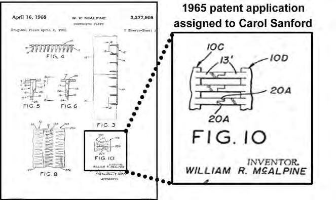 he name “Bill McAlpine” has such resonance in the component industry that when ITW acquired the company and removed his name, they soon found value in returning to the Alpine moniker. There are many reasons McAlpine earned that singular honor, but one of the least recognized is that, 60 years ago, he designed the basic truss plate we use today. I myself just found the proof, buried in a tiny detail on a Sanford patent, and it is worth understanding how McAlpine arrived at that design as well as why it took many years for his main competitors to copy it.