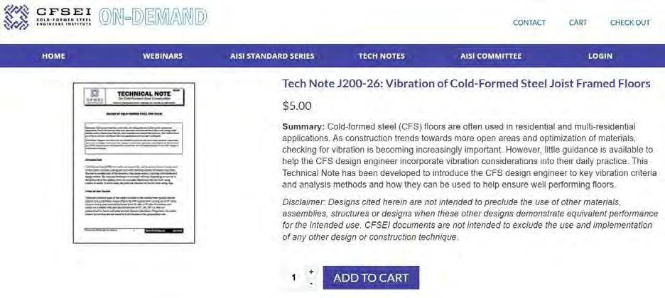 January 26, 2026, Falls Church, VA — The Cold-Formed Steel Engineers Institute (CFSEI) has published Technical Note J200-26, “Vibration of Cold-Formed Steel Joist Framed Floors.”