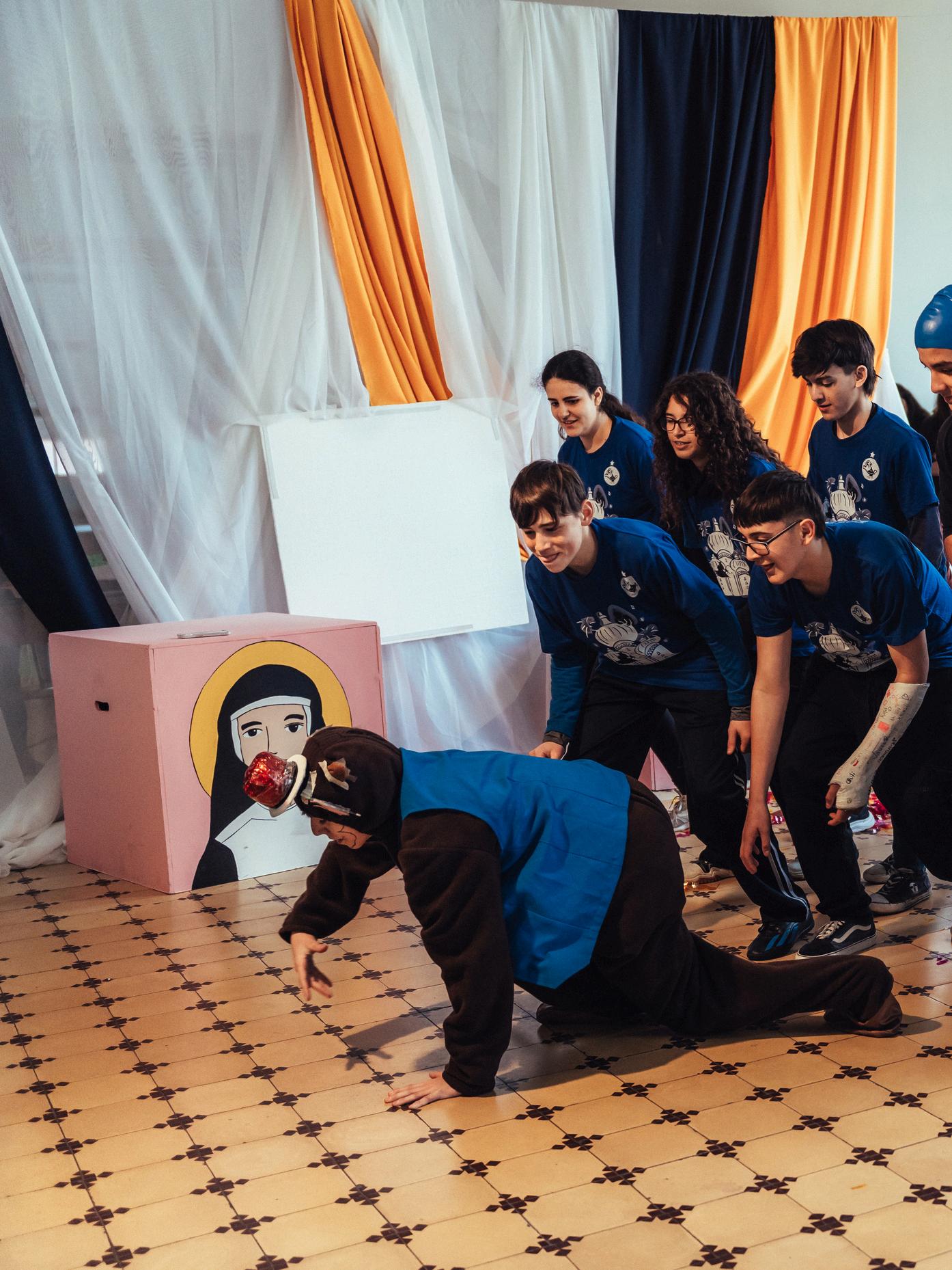 Con los más pequeños, el ejercicio constó en trabajar con una frase elegida por ellos e interpretarla en un circuito de etapas, a partir de diferentes sentimientos y personajes.