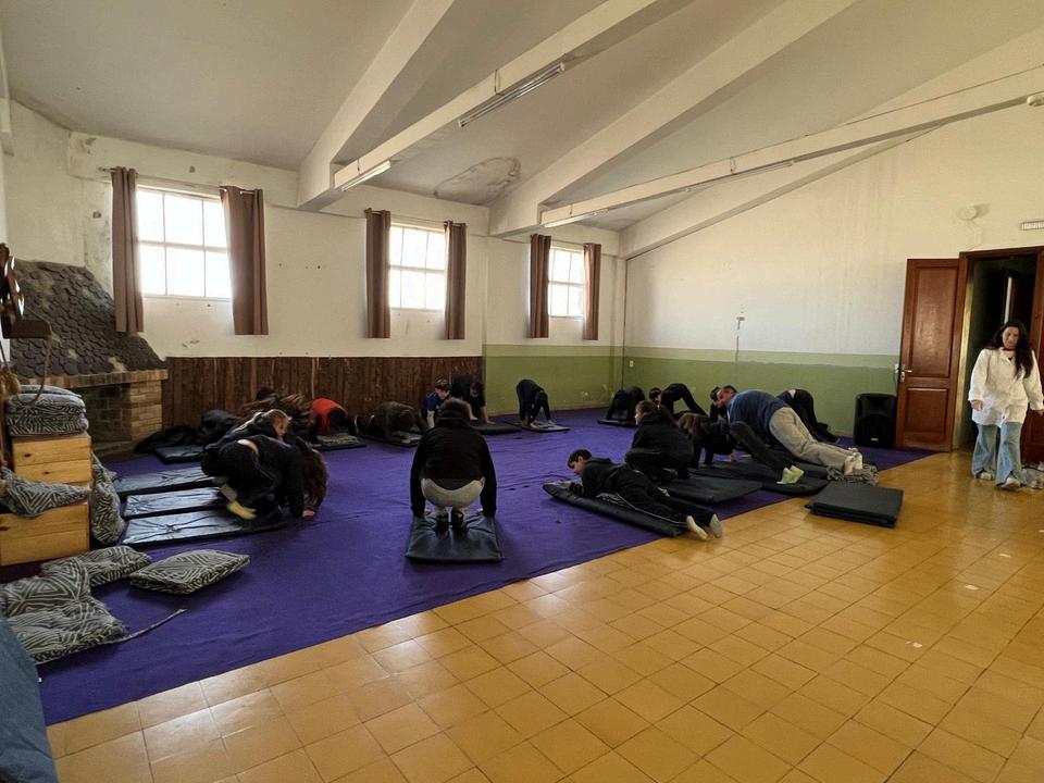 El objetivo de la actividad fue que los niños desarrollen movimientos y respiración conscientes en una práctica dinámica, herramientas para el auto control y diferentes posturas corporales.