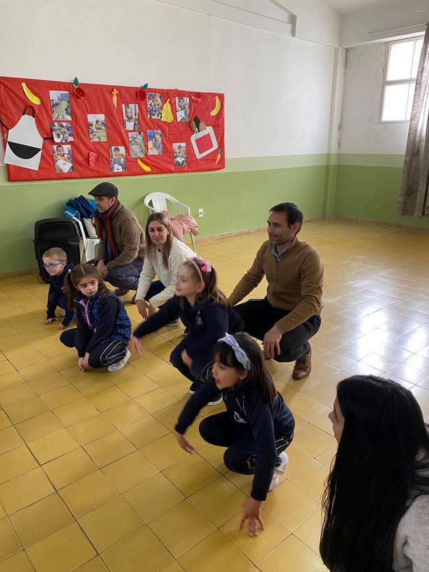 Para el 1er. ciclo realizamos un juego/canción que solemos trabajar en clase y se los enseñamos a las familias: "Tomate perita".