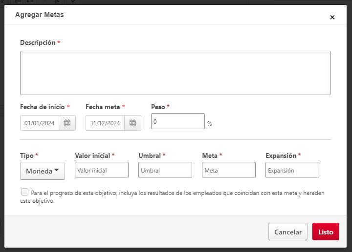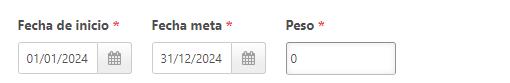 Ingresá la fecha de inicio y final de la meta, esta fecha puede estar en cualquier rango desde el 1ro de enero 2024 hasta el 31 de diciembre 2024