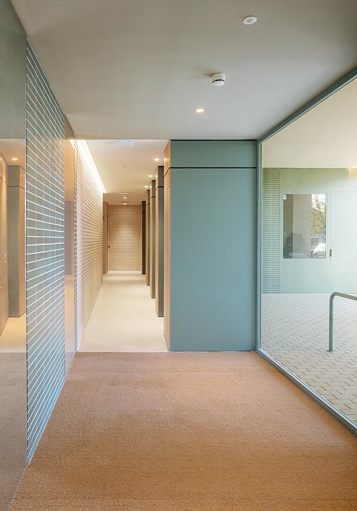 A pale coloured brick was chosen to make the apartments facing one another seem brighter, and to give the complex unity. The façades are comprised entirely of six and twelve-inch brick. For this purpose, the brick was specially made for this project in a thickness of 25 cm so that no bricks had to be laid crossways. And with practically four different window widths, all of the building façades are modulated.
