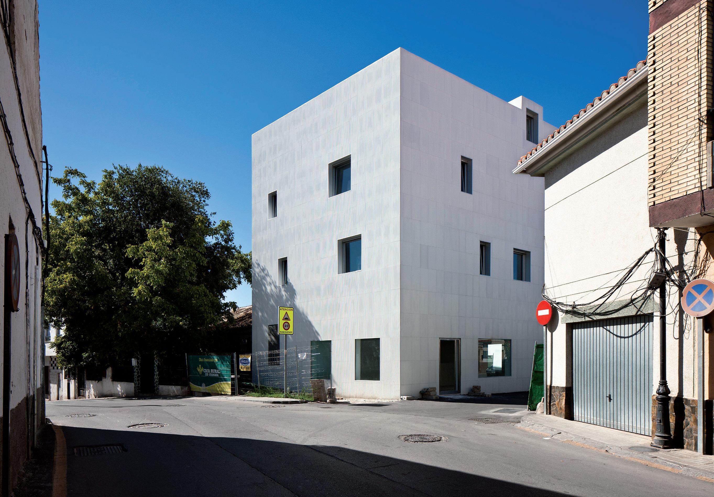 La fachada está compuesta por una solución constructiva durable, eficiente y de bajo mantenimiento, al tiempo que utiliza un material reconocible en las edificaciones industriales colindantes. La obra de fábrica es el elemento principal, con el que se crean relieves, texturas, aparejos y celosías, introduciendo el color como una sencilla estrategia de amabilizar el conjunto.