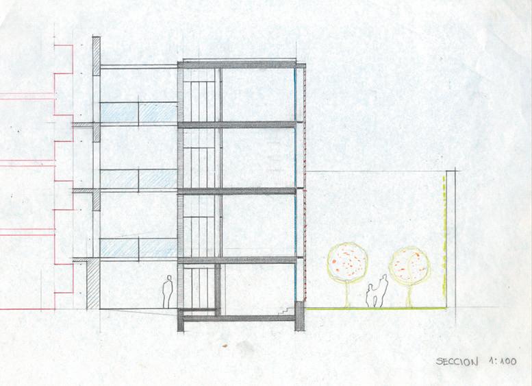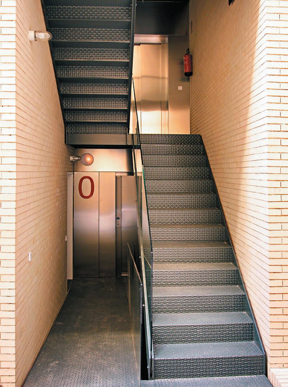 Access to the building was conditioned by the desire to keep the houses separate from the commercial activity of the retail outlets, and by the topography, given that there is an altimetric difference of 3 metres between the north and south ends of the plot. Also because of the topography, the building had to be adapted to the level using structural joints. The width of some streets limited the height of the building and, in cases where the maximum height allowed for brick was reached, metal railing had to be used in place of parapet.