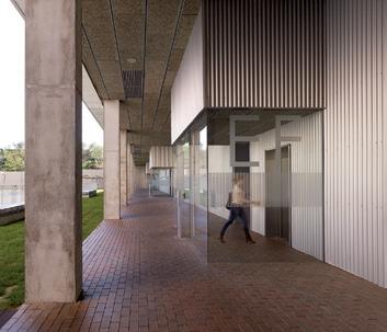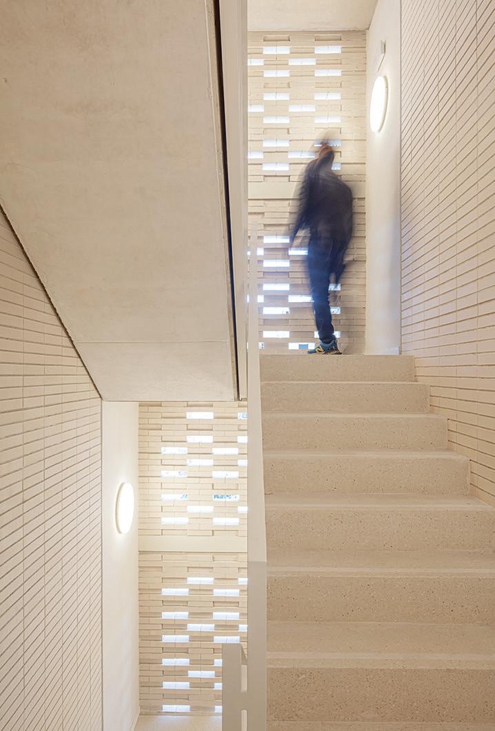 The main formal attribute of the building is brick, which might seem a humble material. Here it is used extensively and applied in different ways, evoking values of the traditional building tradition and, in a way, vindicating the professional skill and dignity of the construction workers.
