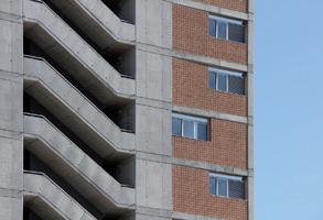 La división programática se traslada con fuerza al aspecto exterior de la torre manifestando una doble escala: en primer plano la vibración entre las líneas horizontales de las barandillas, cuya separación cambia según la planta sea de dúplex o no, y por detrás la variación de las terrazas en función de las diferentes combinaciones de viviendas.