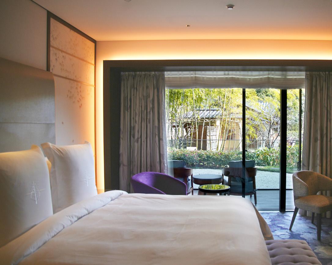 5つ星レジデンスのあらゆるサービスや施設をお使いい ただくことができ、ラグジュアリーなひとときをお過 ごしいただけます。エントランスは壮麗な建築が施さ れており、広い窓からは1万平米の池泉回遊式庭園「積 翠園」を眺めることができます。春は桜、冬は雪をか ぶった山々など、四季折々の景色をお楽しみいただけ ます。内装は、開放的な間取りとおもてなしの空間、 そしてプライベートが守られたベッドルームが特徴で す。オーダーメイドの素晴らしい美術品に囲まれて、 フルキッチンでゲストをもてなしたり、ご家族とくつ ろいでいただけます。美しい住まいに加え、フォーシ ーズンズのサービスと設備により、一層充実した京都 滞在をご提供致します。