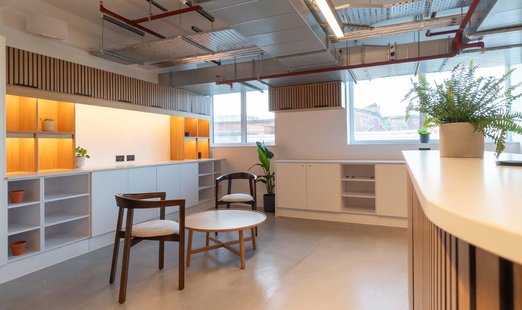 Following the departure of the initial contractor, Thwaites’ new headquarters was taken forward with a bespoke CAT B fit-out. The space was transformed into a functional and aesthetically pleasing environment that fully reflects the company’s brand and operational needs. Every element, from the strategic layout to the refined finishing touches, was thoughtfully crafted to enhance productivity while fostering a collaborative atmosphere. This headquarters now stands as both a highly functional workspace and a testament to Thwaites’ commitment to excellence and innovation.