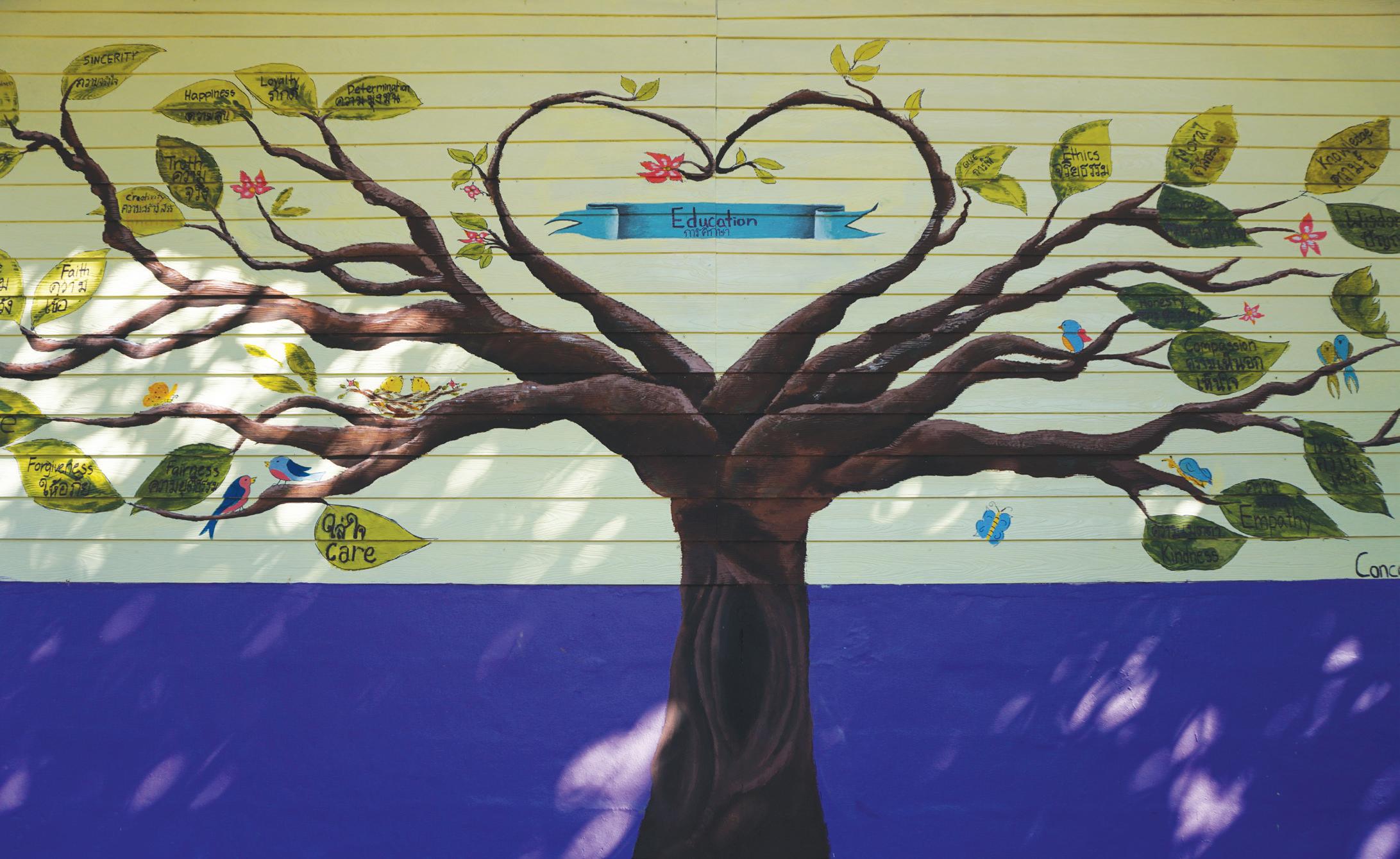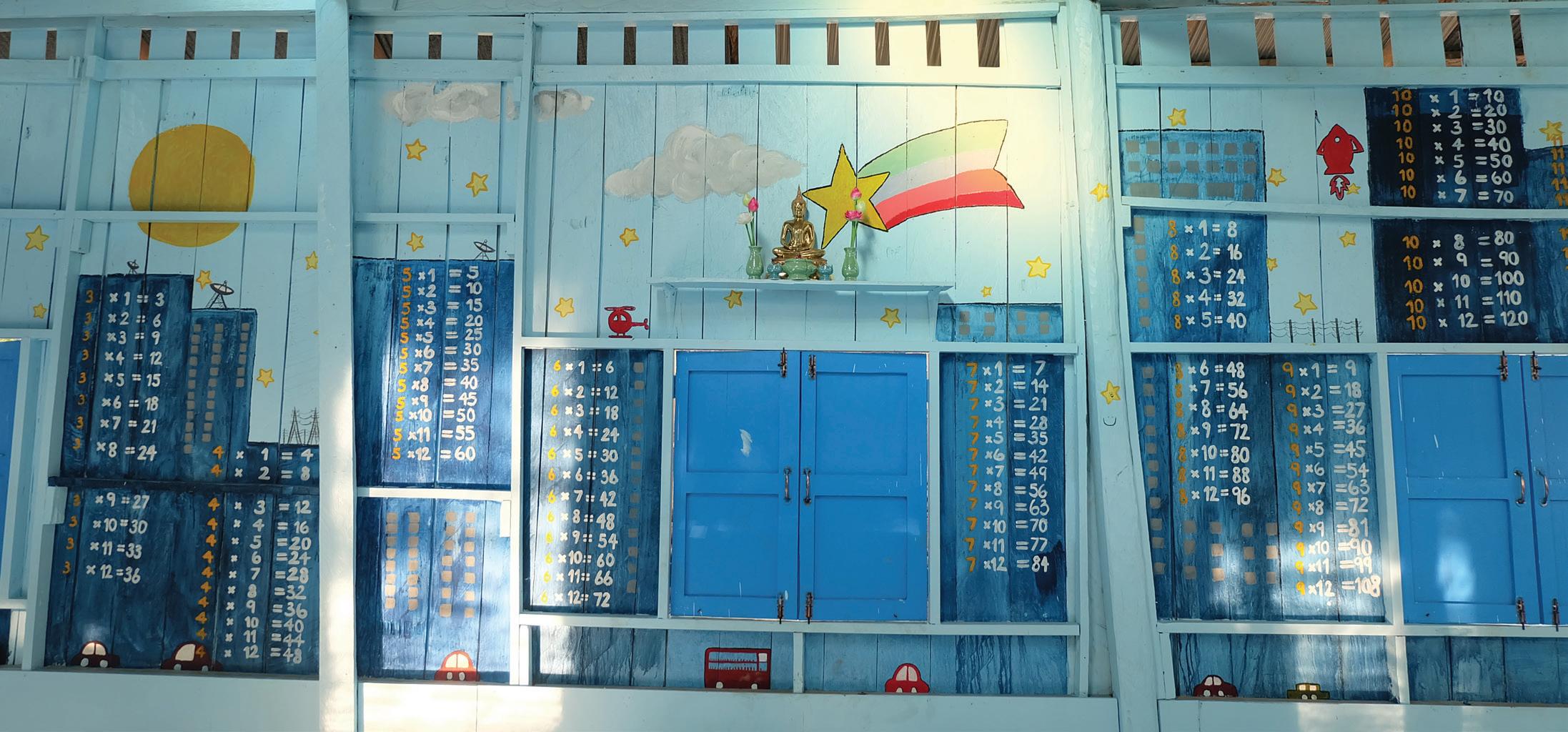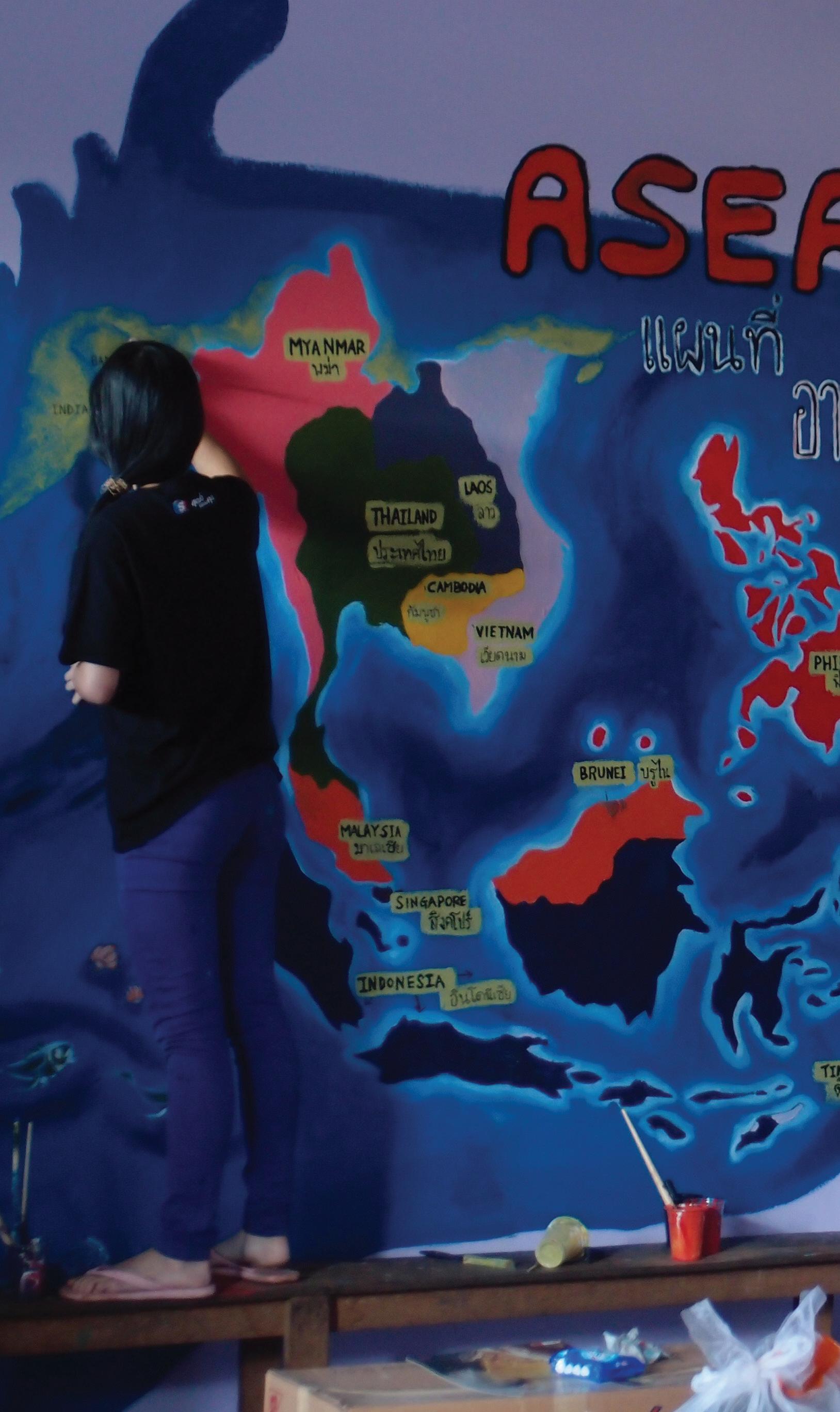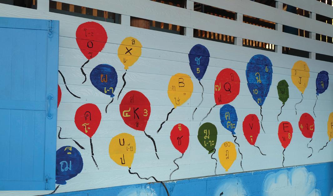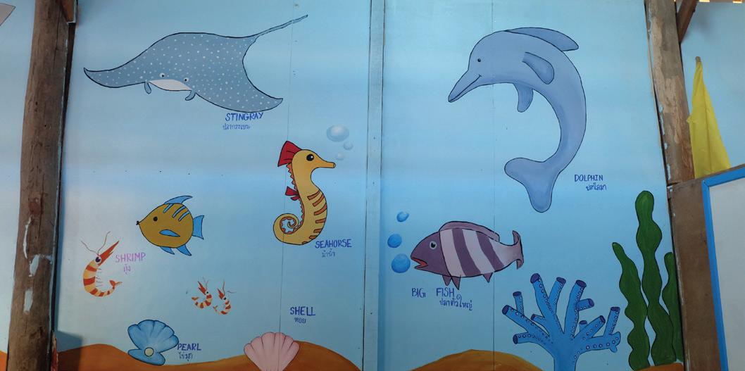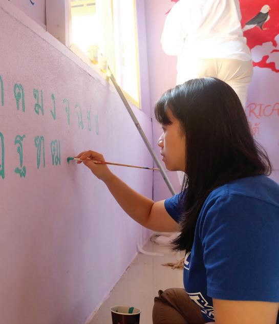 Over the course of five days, with paintbrushes and drills in hand, we diligently worked to fix the school, installing new walls and windows along the facilities and painting beautiful murals in the buildings. By the end of the trip, we had two beautifully decorated classrooms, a rainbow-painted canteen, and several beautiful murals featuring the bustling city of Bangkok, the galactic Solar System, the underwater world, and even a map of the World, complete with pictures of animals around the globe. We even created a small library, shelved with fantastic Thai books that the children will enjoy.