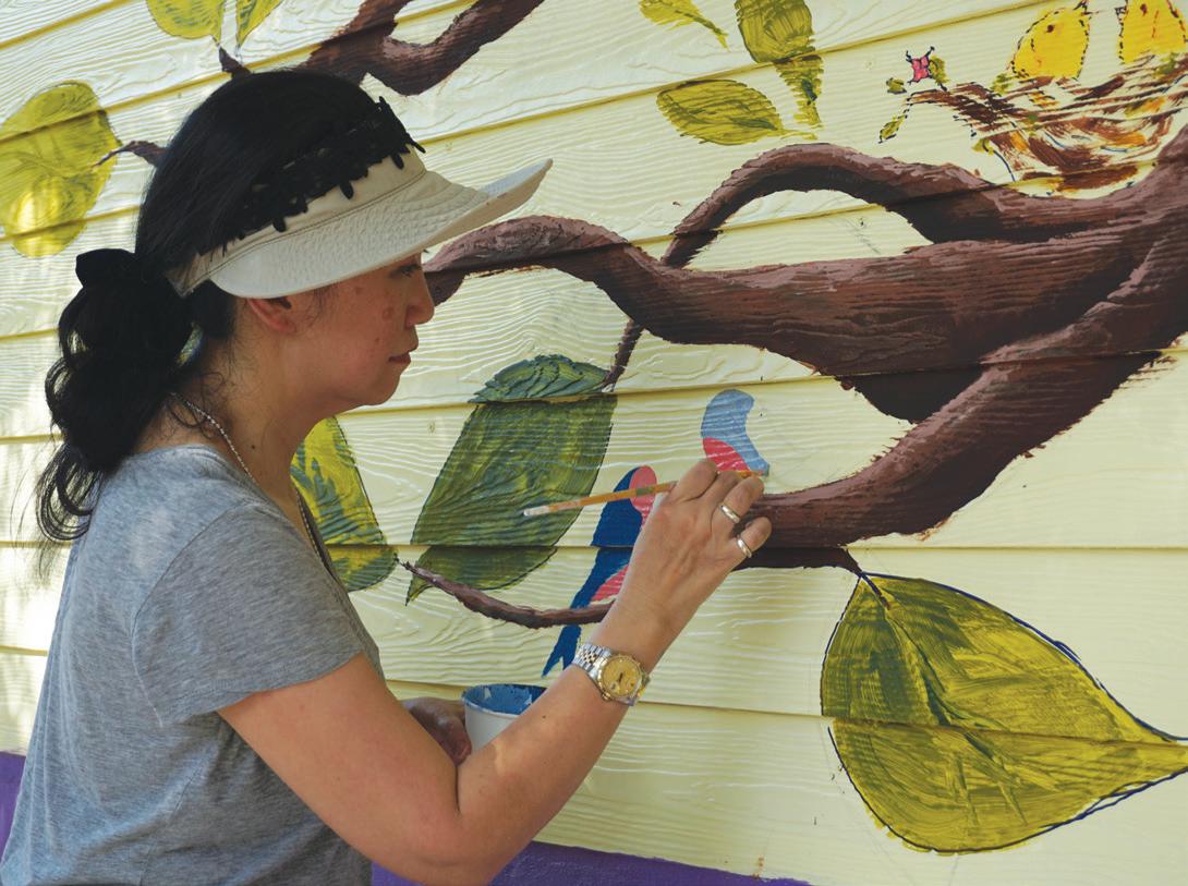 We continued with final touches on November 13, such as painting the fine details and finishing the designs of the drawings that we made. Because we had left over time, we decided to add walls to the canteen and paint pictures of cartoon people onto the walls. I helped with painting a large tree and pictures of people. I have never painted before and found it very difficult to come up with a nice design. This is because it required a lot of meticulousness and concentration.