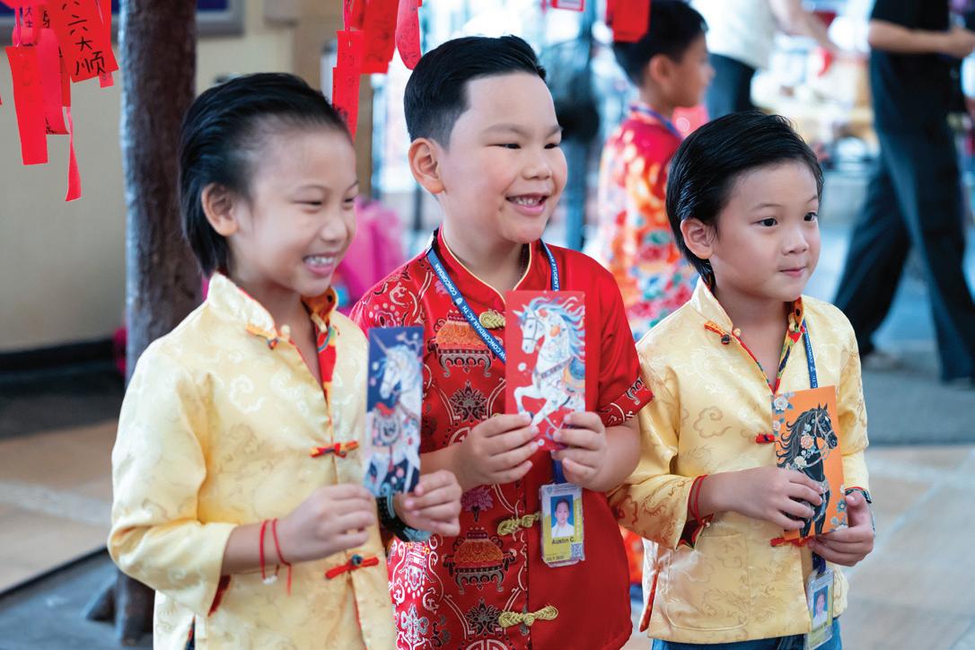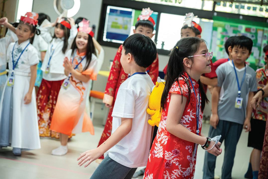 Dressed in beautiful Chinese festive attire, members of our community embraced the celebratory spirit with great joy. Everyone received traditional red envelopes, “Hong Bao” filled with golden chocolate coins, symbolizing blessings and prosperity for the year ahead. Families and students captured memorable moments at the festive lobby backdrop, adding warmth and vibrancy to the celebration.