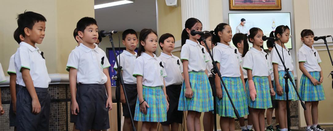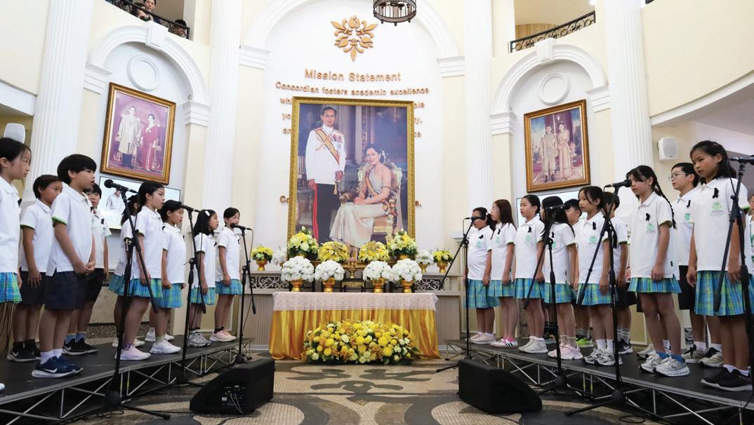 On that day, the lobby was filled with proud parents, many of whom stood along the stairways and on the second floor, listening attentively and capturing their children’s performances. The students sang with clear, resonant voices and genuine emotion, sharing their music with confidence and pride. Their voices created a truly heartwarming experience that reflected profound loyalty, deep gratitude for His graciousness, and the enduring bond between the Thai people and their beloved monarch. It was a truly memorable and deeply touching moment for all of us.
