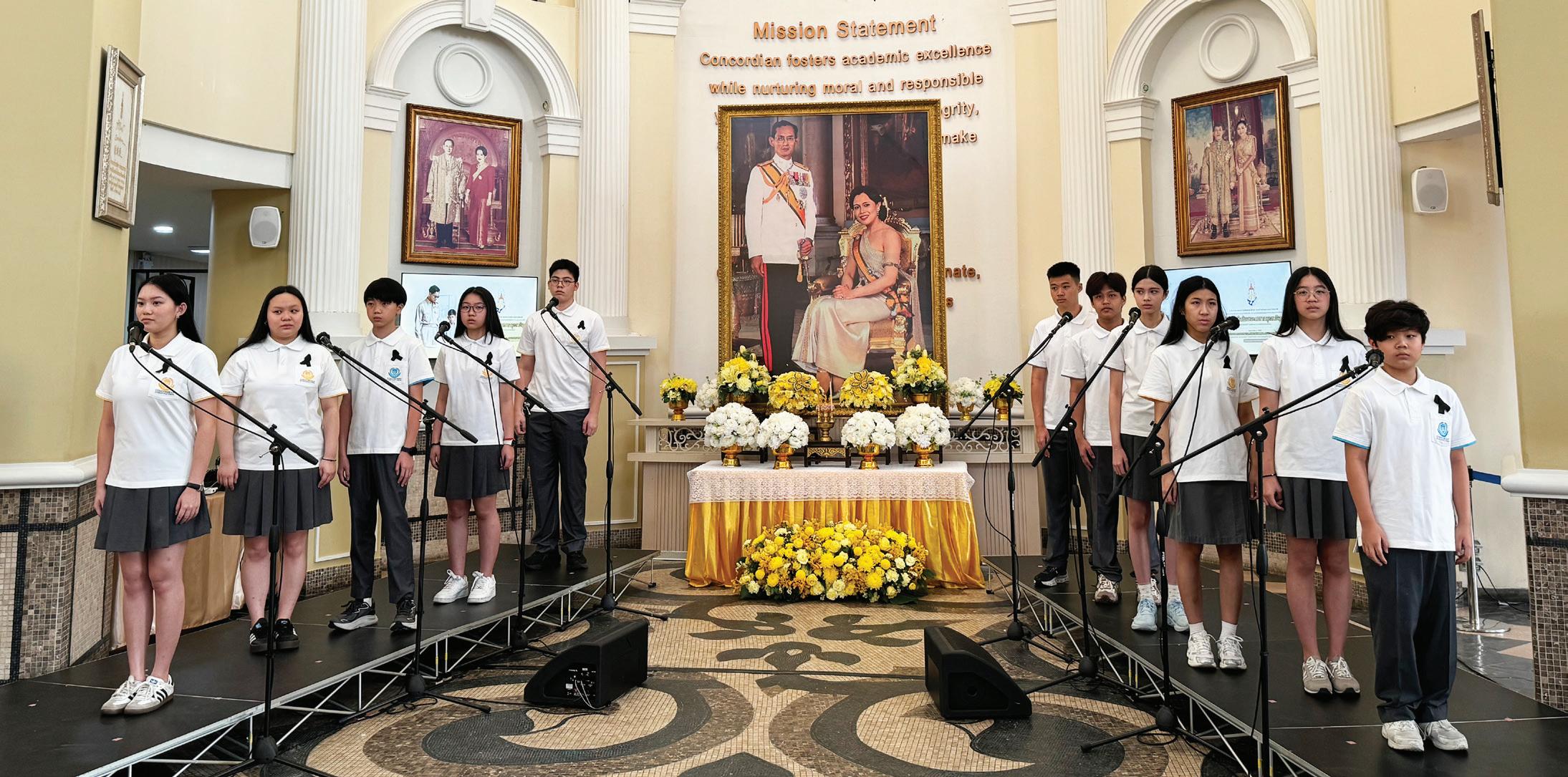 Music also played a central role in the celebration. The PYP choir performance of Mo Li Hua, accompanied by the delicate and distinctive sounds of the guzheng, offered a unique fusion of vocal harmony and instrumental texture, while the Secondary choir paid tribute to King Bhumibol Adulyadej The Great through a moving rendition of The Impossible Dream, composed by His Majesty in 1971. Adding a theatrical dimension to the event was an excerpt from The Wizard of Oz, brought to life through a collaboration between student actors and instrumental musicians and reimagined with Concordian’s mission and vision at the forefront