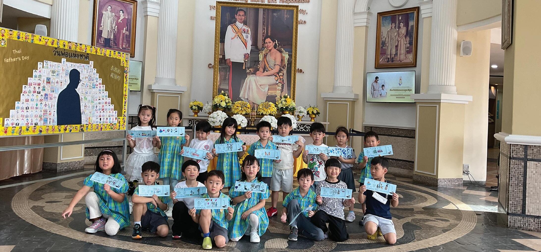 Early Years Students have learned the importance of “Father’s Day” “วันพ่อแห่งชาติ” and “Thai National Day” “วันชาติ” on December 5th. They’ve listened to a story of the Great King Rama IX, and a lovely story about a father and each grade level has created their own special Father’s Day cards. We also displayed their father’s picture artworks at the school lobby.