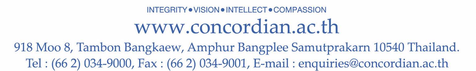 Please do not hesitate to contact Khun Star (star@concordian ac th) if you have any questions