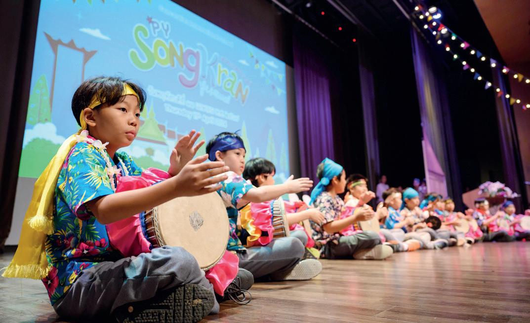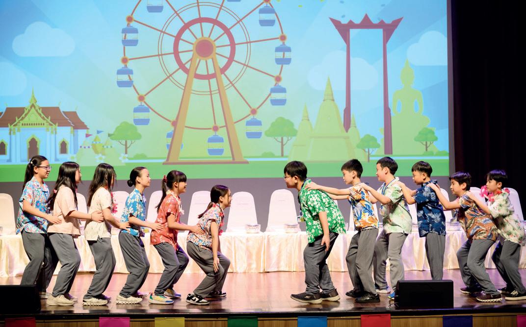 For the highlight of the PY performance in Grand Theater, this year G4 students delivered a fantastic performance that showcased various Thai folk games that were designed to foster good relationships between adults and young people, as well as to provide entertainment, relaxation, and exercise such as Catching the last one in the line (รีรี ข้าวสาร), Snatching a baby from the mother snake (งูกนหาง), Hiding a cloth behind one’ s back (มอญซ่อนผ้า), and Banana rib hobbyhorse riding (ขี่ม้าก้าน กล้วย).