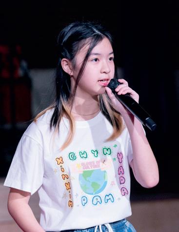 G5I Pam: 知道我是班级第一名 的时候,我觉得很开心和兴 奋。我想要感谢我的老师和我 的妈妈。感谢她们帮我练习, 并给我很好的建议。我会继续 努力学习,希望明年还可以获 得冠军。It was an exciting and joyful moment. I’m grateful to my teachers and mother who guided me. I will continue working hard to win again next year.