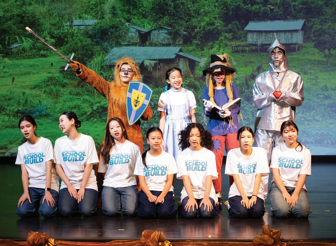 Music also played a central role in the celebration. The PYP choir performance of Mo Li Hua, accompanied by the delicate and distinctive sounds of the guzheng, offered a unique fusion of vocal harmony and instrumental texture, while the Secondary choir paid tribute to King Bhumibol Adulyadej The Great through a moving rendition of The Impossible Dream, composed by His Majesty in 1971. Adding a theatrical dimension to the event was an excerpt from The Wizard of Oz, brought to life through a collaboration between student actors and instrumental musicians and reimagined with Concordian’s mission and vision at the forefront