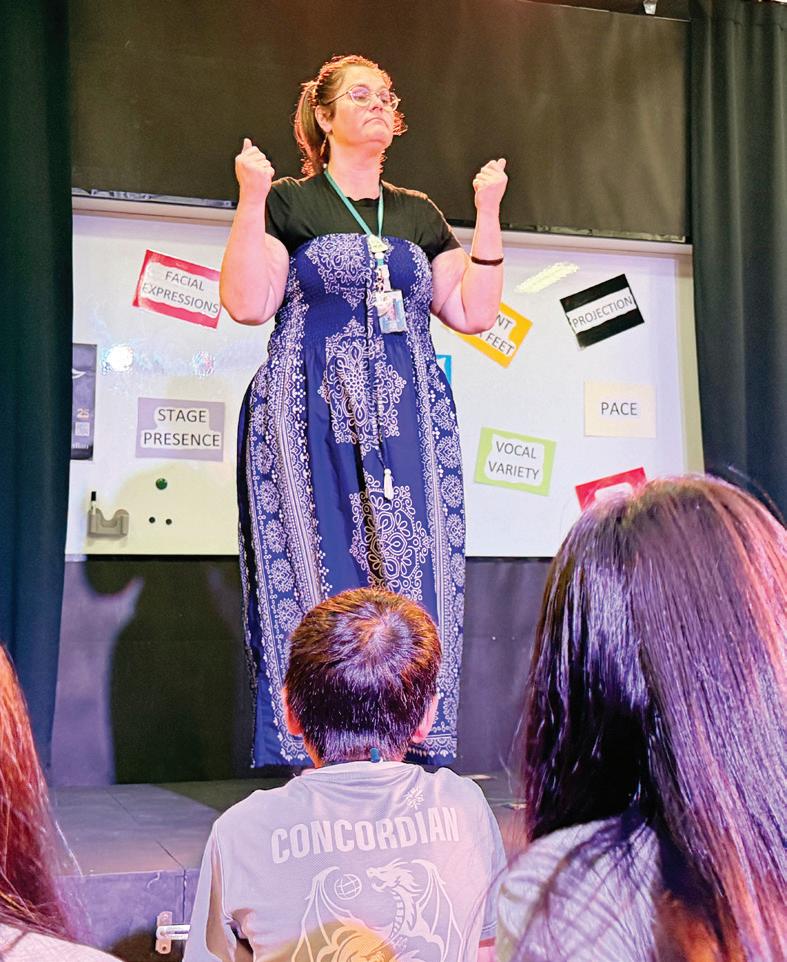 During the workshop, students explored the idea that effective public speaking is not about being loud or memorizing words, but about using the body and voice with intention. Students were introduced to key speaking tools such as facial expression, gesture, eye contact, projection, pace, vocal variety, and stage presence.