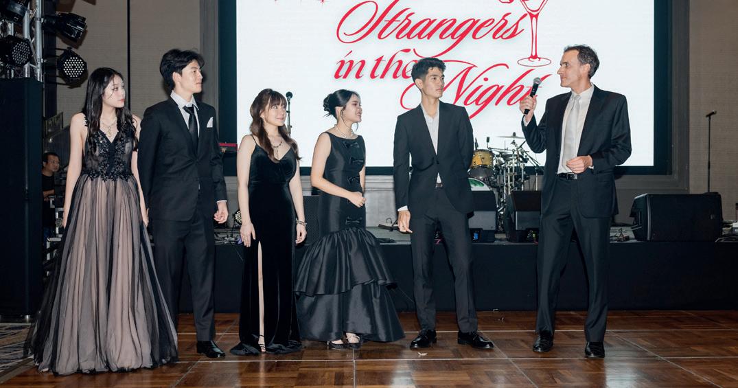 High school students from grades 10 to 12 gathered for a prom night that will be remembered for years to come. Themed "Strangers in the Night" and inspired by Frank Sinatra's classic song, the event perfectly blended elegance, fun, and a touch of nostalgia. The ballroom was transformed into a scene straight out of a classic film, with dimly lit chandeliers casting a warm glow over elegantly set tables.