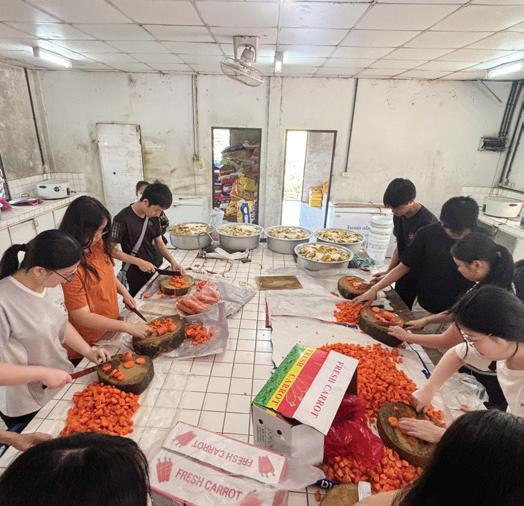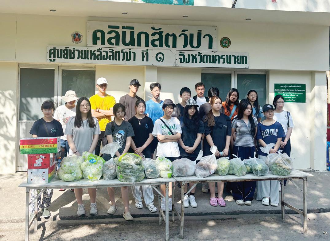 During the trip, students helped prepare food for the animals by cutting vegetables; the club also donated food supplies to the center, including Thai bananas, napa cabbage, carrots, watermelon, pumpkin, and water spinach.
