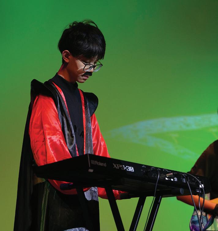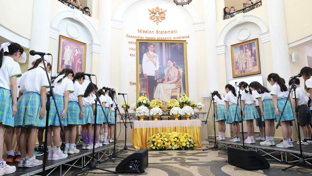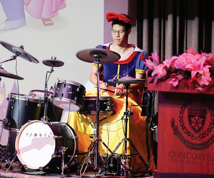 Music also played a central role in the celebration. The PYP choir performance of Mo Li Hua, accompanied by the delicate and distinctive sounds of the guzheng, offered a unique fusion of vocal harmony and instrumental texture, while the Secondary choir paid tribute to King Bhumibol Adulyadej The Great through a moving rendition of The Impossible Dream, composed by His Majesty in 1971. Adding a theatrical dimension to the event was an excerpt from The Wizard of Oz, brought to life through a collaboration between student actors and instrumental musicians and reimagined with Concordian’s mission and vision at the forefront
